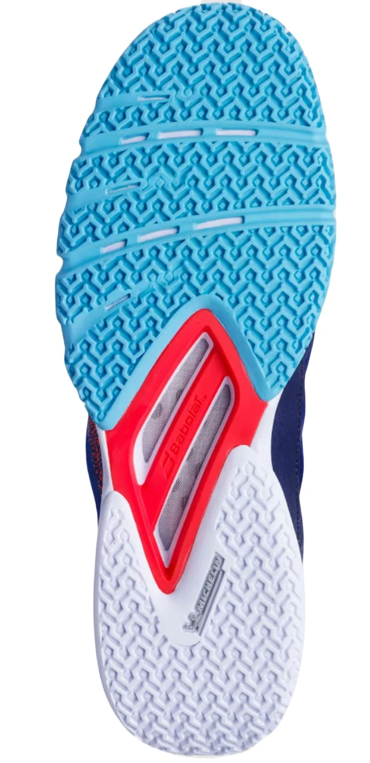 Babolat s’est vraiment focalisé sur ce dernier point et a ajouté 2 renforcements latéraux pour une stabilité accrue quel que soit vos mouvements et déplacements sur le court de padel. La Technologie KPRSX de Babolat offre quant à elle une absorption des chocs supplémentaire dans le talon via des inserts de mousse EVA.