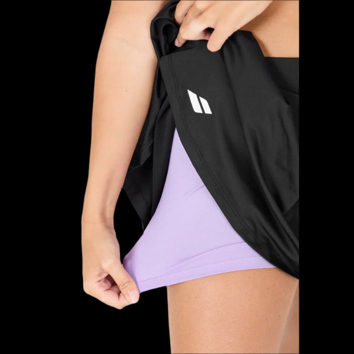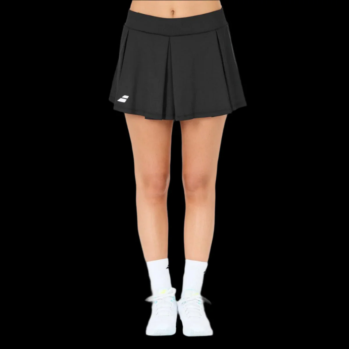 Jolie et douce jupe Babolat pour padel en noir. La jupe est dotée de collants intégrés.