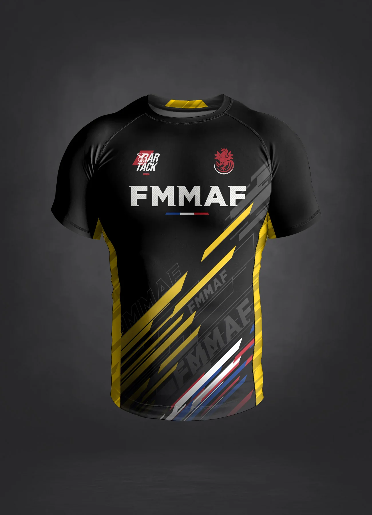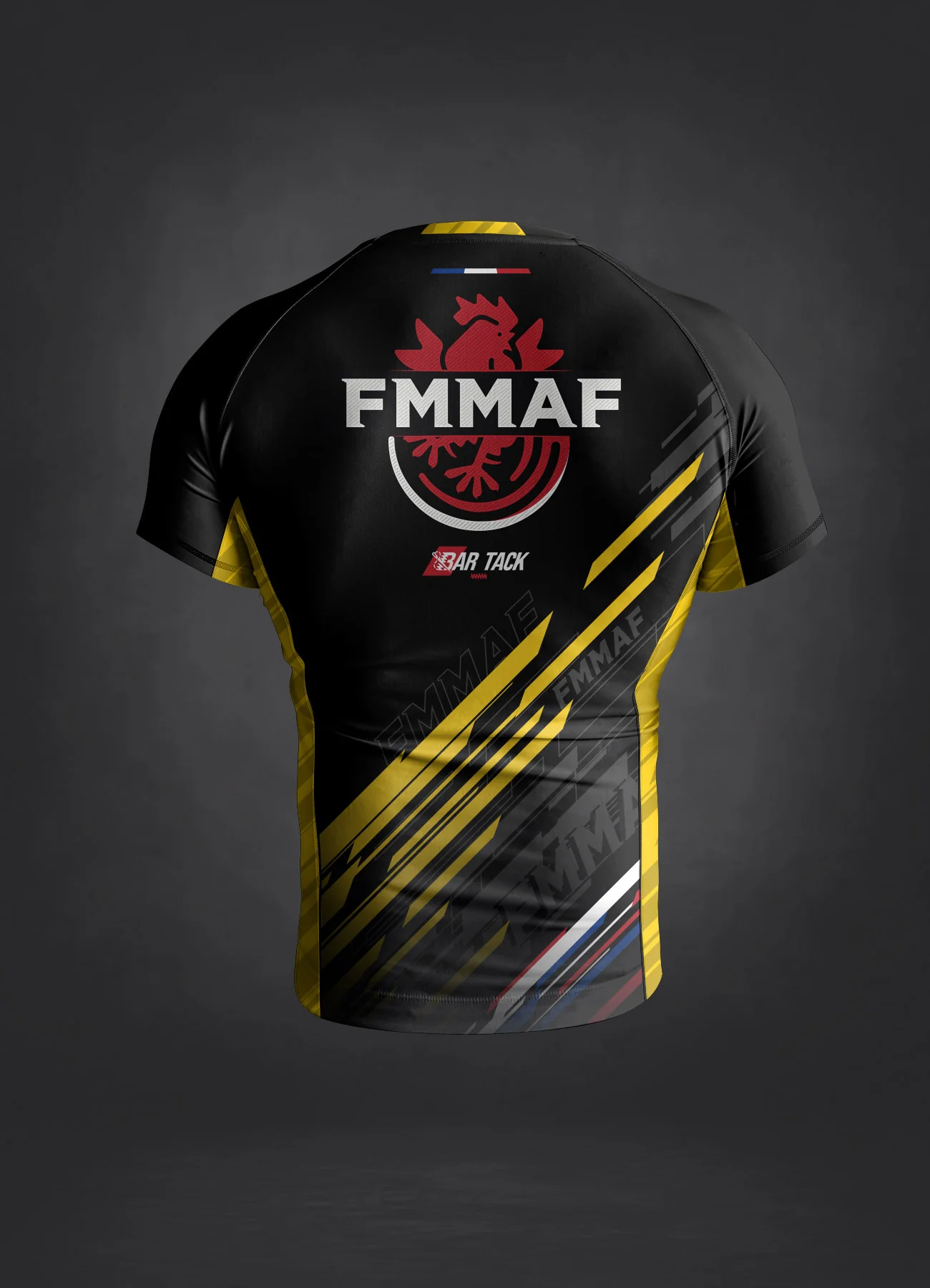 Conçu en étroite collaboration avec la Fédération Française de MMA, le Rashguard officiel Bar Tack x FMMAF vous permet d’afficher votre grade et de respecter toutes les normes requises afin de participer aux compétitions officielles organisées par la FMMAF.