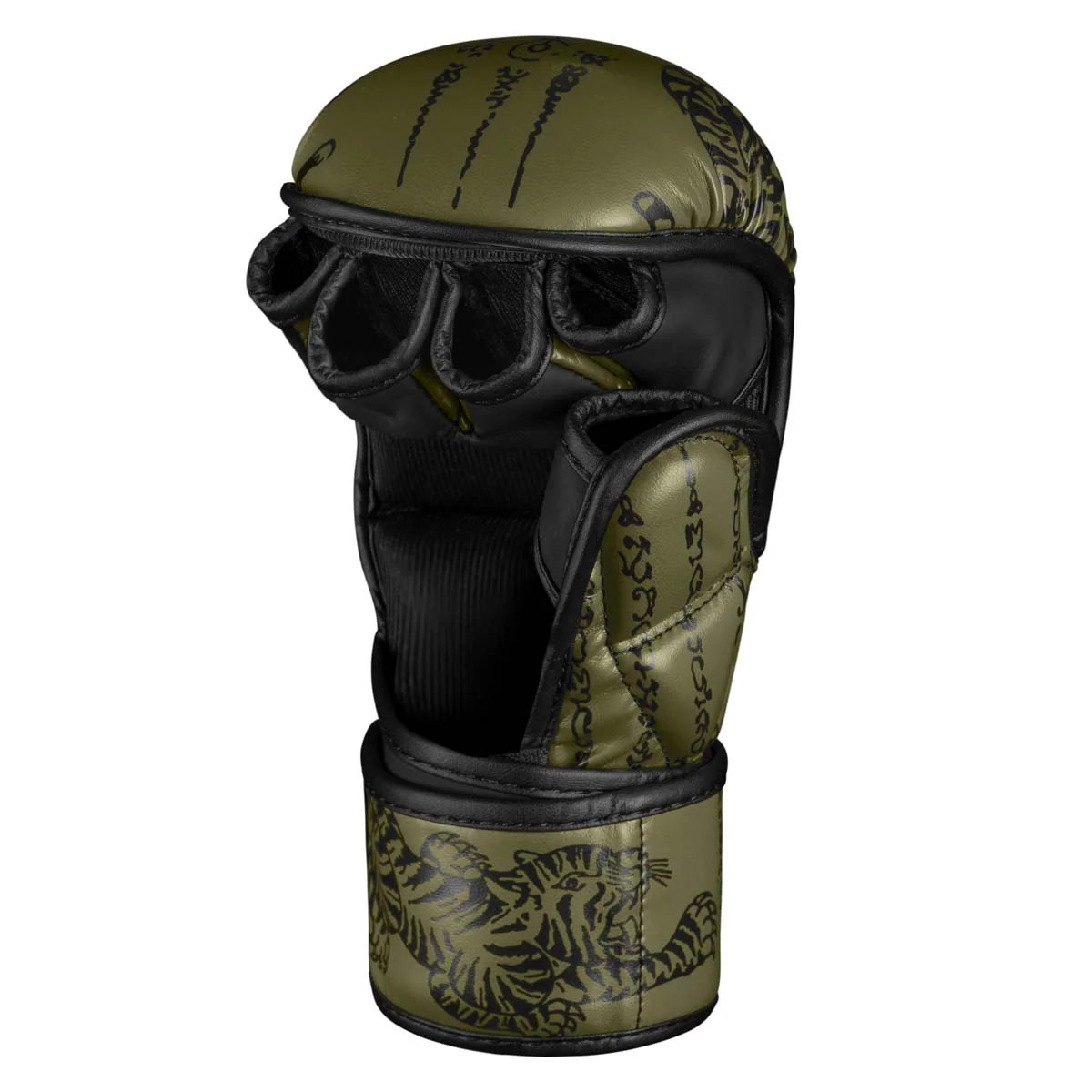 Muay Thai Sparrings- & Trainingshandschuhe – Army Grün mit Sak Yant Design